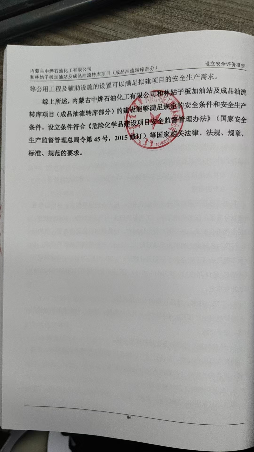 内蒙古中烨石油化工有限公司和林姑子板加油站及成品油流转库项目(成品油流转库部分) |