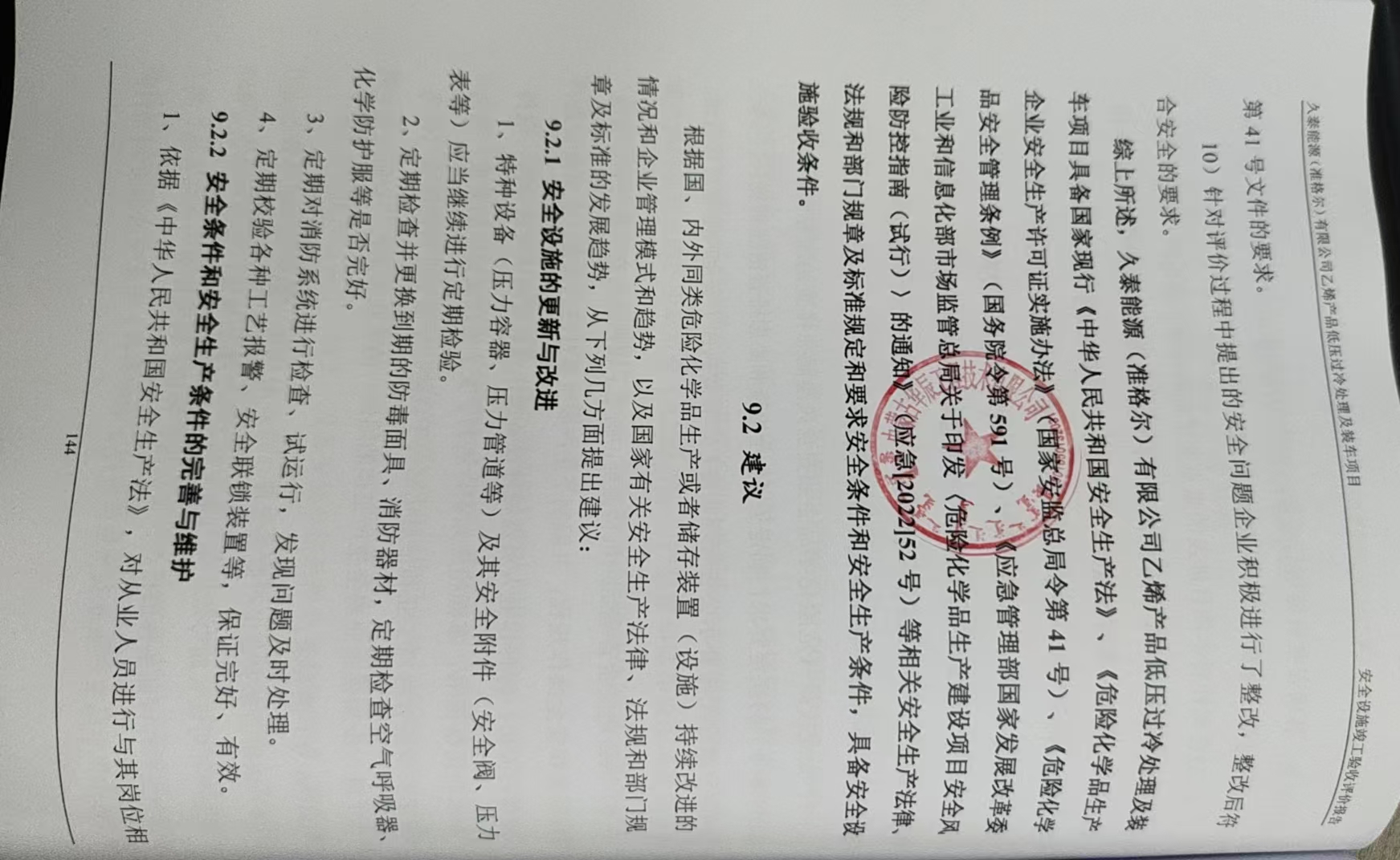 查看与安全设施设计专篇的符合性,安全设施的落实情况、附件资料的收集。 |
