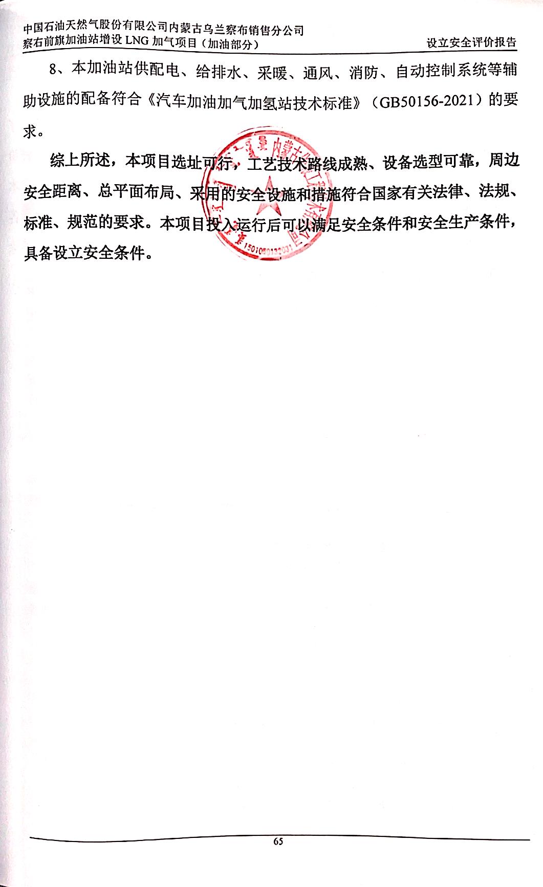 中国石油天然气股份有限公司内蒙古乌兰察布销售分公司察右前旗加油站增设LNG加气项目(加油部分) |
