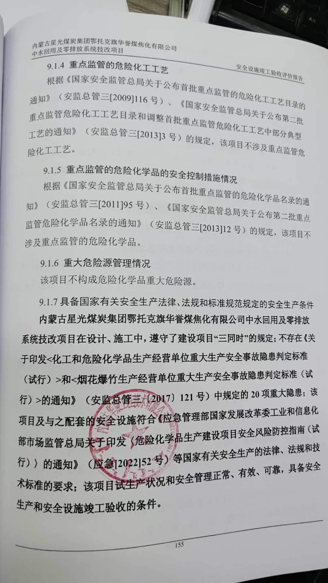 内蒙古星光煤炭集团鄂托克旗华誉煤焦化有限公司中水回用及零排放系统技改项目 |