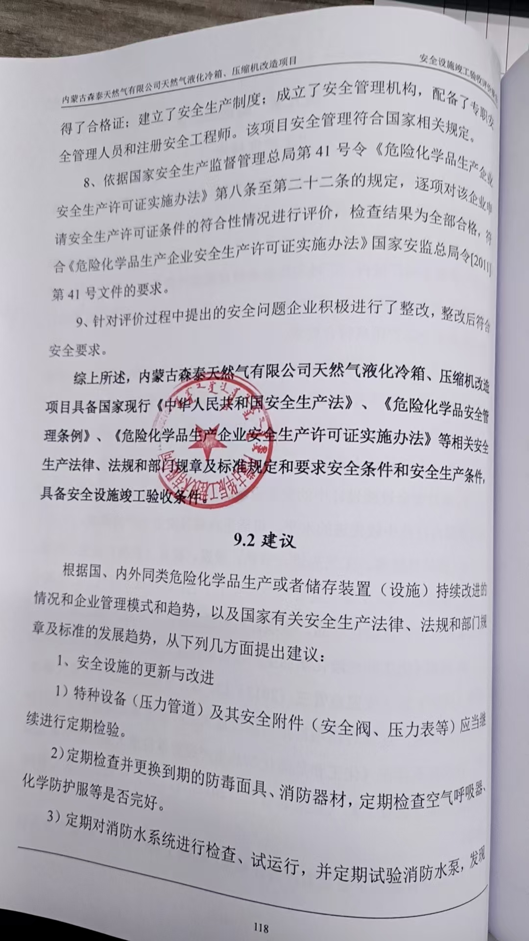 内蒙古森泰天然气有限公司 天然气液化冷箱、压缩机改造项目 |