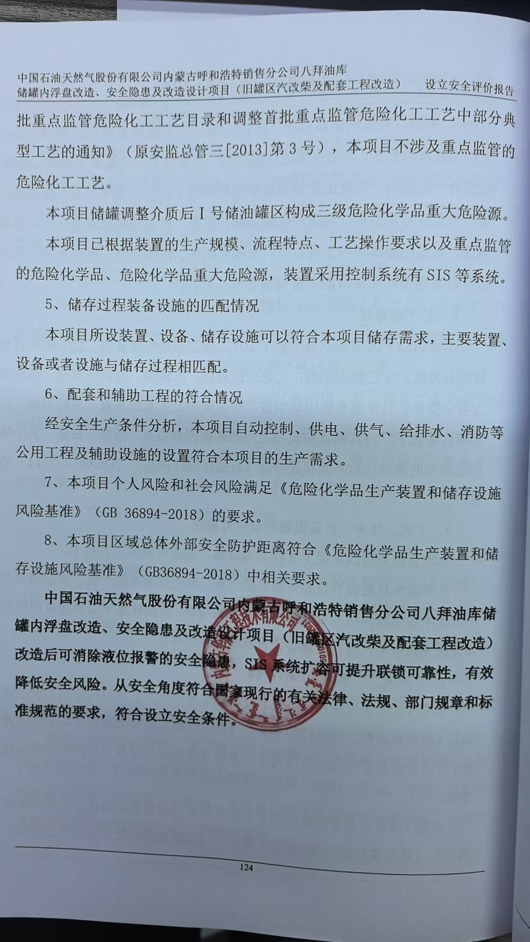 中国石油天然气股份有限公司内蒙古呼和浩特销售分公司八拜油库 储罐内浮盘改造、安全隐患及改造设计项目(旧罐区汽改柴及配套工程改造) |