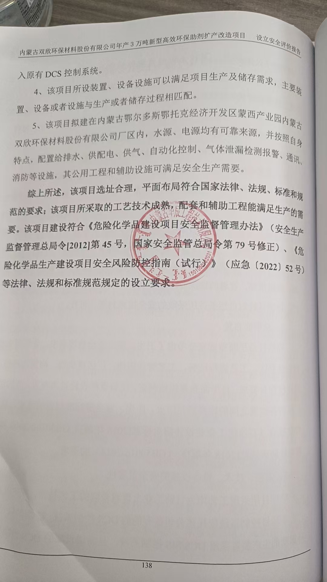 内蒙古双欣环保材料股份有限公司年产3万吨新型高效环保助剂扩产改造项目 |